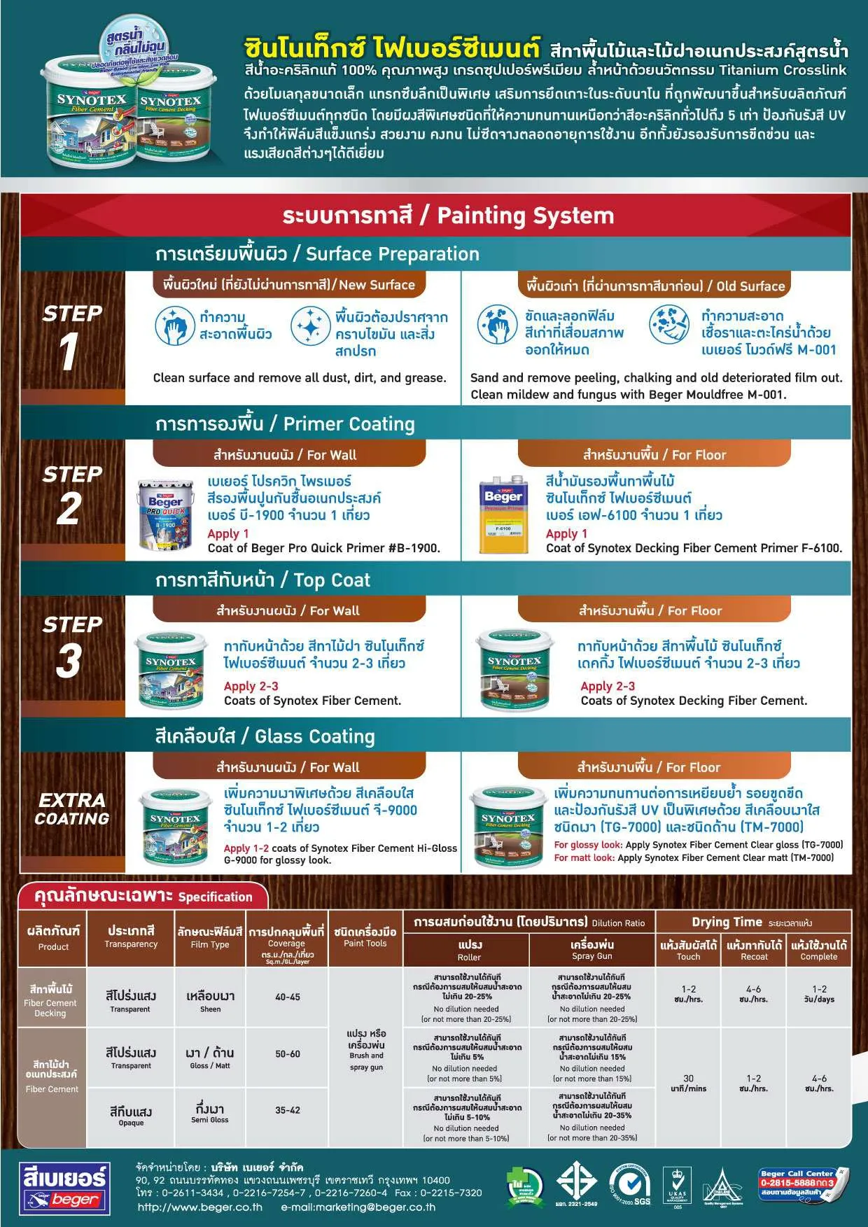 Beger เบเยอร์ ซินโนเท็กซ์ ไฟเบอร์ซีเมนต์ สีทาพื้นไม้เดคกิ้ง ชนิดเหลือบเงา