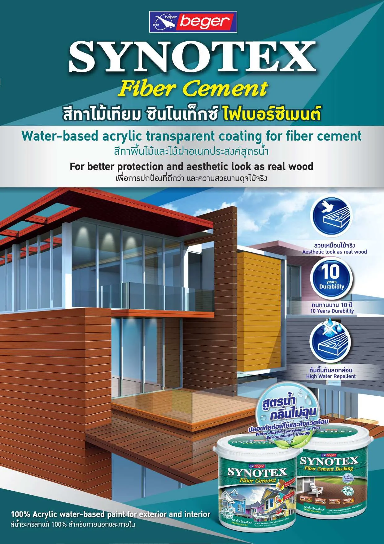 สีทาไม้ไฟเบอร์ซีเมนต์ ซินโนเท็กซ์ สีทาไม้เทียม สีพิเศษทนต่อด่างของปูน ป้องกันน้ำ ทนแรงกระแทก สูตรน้ำกลิ่นอ่อน ฟิล์มสีสวยงามเหมือนไม้จริง