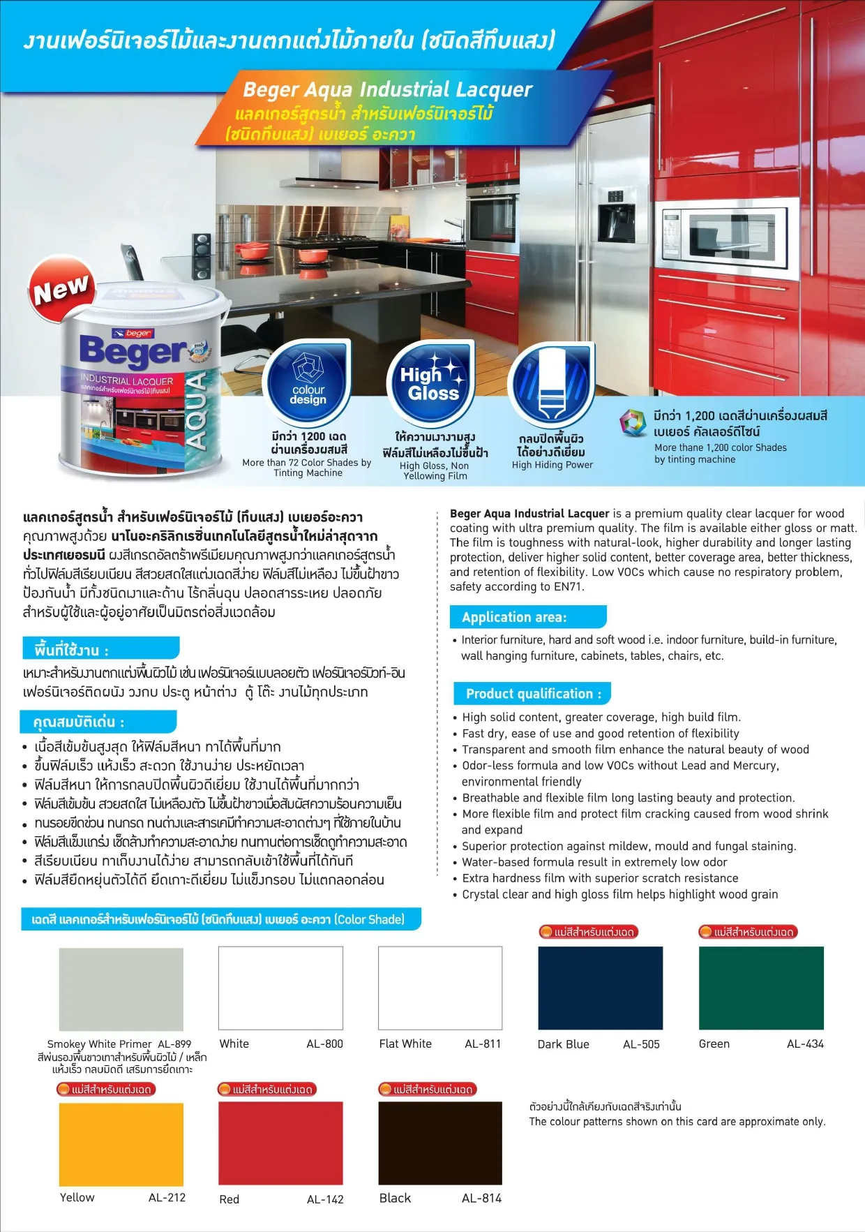 | เฉดสี Beger | G-7900 ชนิดเงา, S-6900 ชนิดกึ่งเงา |