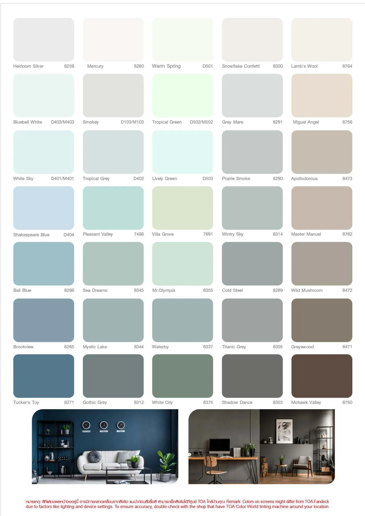 | เฉดสี Toa | 000A, D777 White, D888 Smoke Grey |
