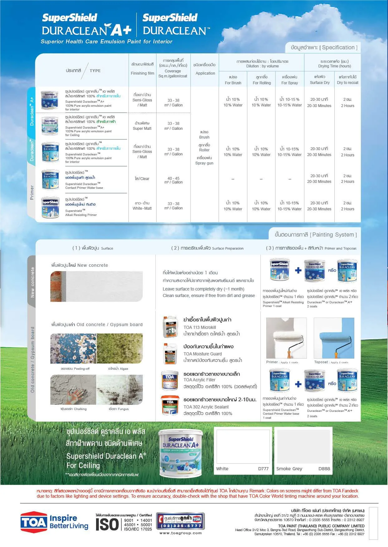 TOA ทีโอเอ ซุปเปอร์ชิลด์ ดูราคลีน เอ พลัส สีน้ำอะคริลิก สําหรับทาฝ้าเพดาน ชนิดด้านพิเศษ