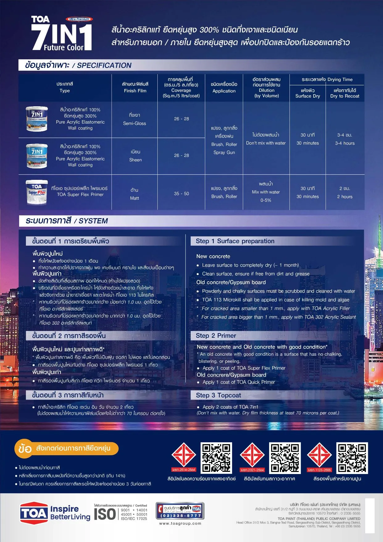 ทีโอเอ 7 in 1 สีน้ำอะคริลิกยืดหยุ่นสูง ชนิดเนียน